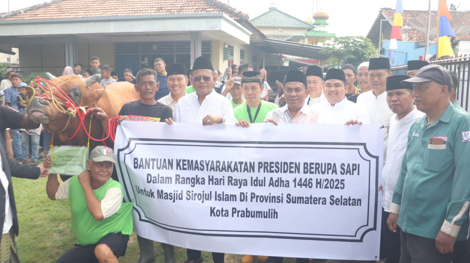 PRABUMULIH , Viralsumsel.my.id— Pemerintah Kota Prabumulih bersama seluruh masyarakat menyampaikan rasa hormat dan terima kasih kepada Presiden Republik Indonesia, Bapak H. Prabowo Subianto, atas bantuan hewan kurban berupa satu ekor sapi seberat hampir 1 ton dalam rangka memperingati Hari Raya Idul Adha 1446 Hijriah.