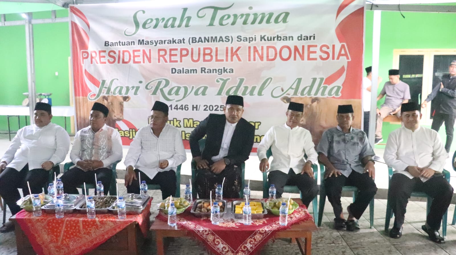 Penyerahan dan penyembelihan hewan kurban dilaksanakan di Masjid Sirojul Islam, Kelurahan Muntang Tapus, Kecamatan Prabumulih Barat, pada Jumat (6/6/2025). Bantuan yang disalurkan melalui program Bantuan Masyarakat (Banmas) ini disambut penuh syukur oleh warga dan Pemerintah Kota Prabumulih.